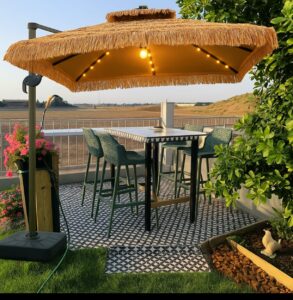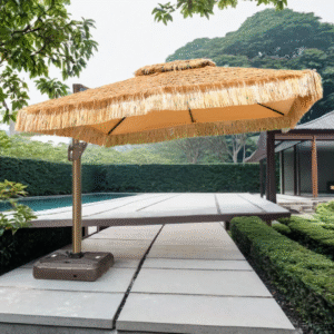 שמשיות יוקרה קש רגל צד 3×3 מאלונמיום עם תאורת לד סולארית ובסיס 150 קג הכי יפות ואכותיות שיש אטום לגשם .