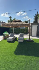 השמשיות קש שלנו הן לא רק הכי יפות אלא היחידות שהינן רגל צד 3×3 הן גם עם בטנת בד פוליאסטר 250 גרם למטר מה שעושה אותן עמידות ביותר ואף אטומות לגשם הדמוי קש תפור על הבד ומקנה להן מראה אקזוטי ותחושת חוף ים ,